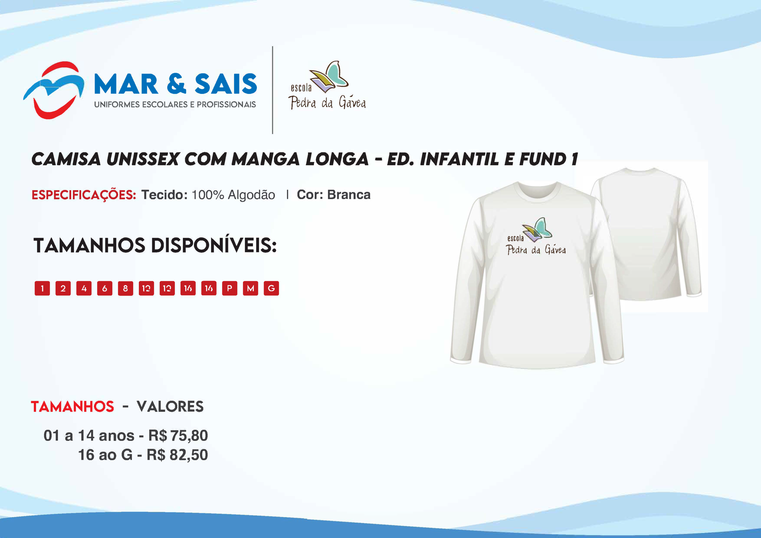 CAMISA UNISSEX M. LONGA - ED. INFANTIL E FUND 1