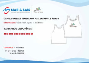 CAMISA UNISEX SEM MANGA - ED. INFANTIL E FUND 1