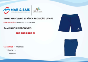 SHORT MASCULINO ED FISICA PROTEÇÃO UV + 50